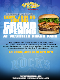 Our community is growing by leaps and bounds these days. Grand Park is bringing in a ton of new businesses, and one of those has partnered with our Gridiron Club to tie a fundraiser to their grand opening. Food is free (!) and free-will donations will go to our Gridiron Club. It will be a limited menu, but what a cool way to open! Please consider stopping by to support both the Stacked Pickle and your Rocks.